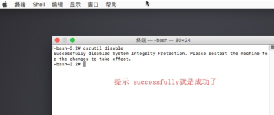 关闭SIP。 (同样的步骤输入命令csrutil enable
