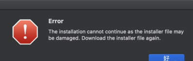 Error The installation cannot continue as the installer file may be damaged. Download the installer file again.