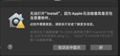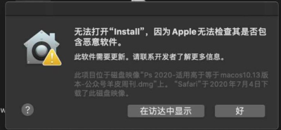 Mac安装Adobe Photoshop的时候提示