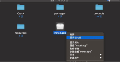 找到install,右键打开,显示包内容